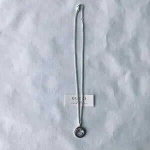 GUCCI Necklace Interlocking Double G Logo Silver 925 w Box & Jewelry Pouch